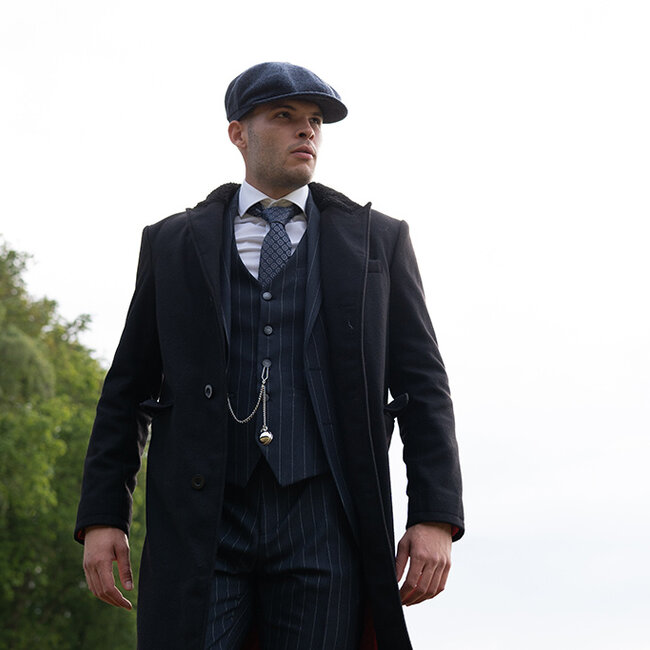 Die horizontalen Taschen verleihen der Jacke einen modernen Look, während der lange, spitze Kragen dem authentischen Peaky-Blinders-Design treu bleibt. Ob Sie sie über einem schicken Anzug tragen oder leger kombinieren, diese Jacke hebt Ihr Outfit auf ein unvergleichliches Niveau.
