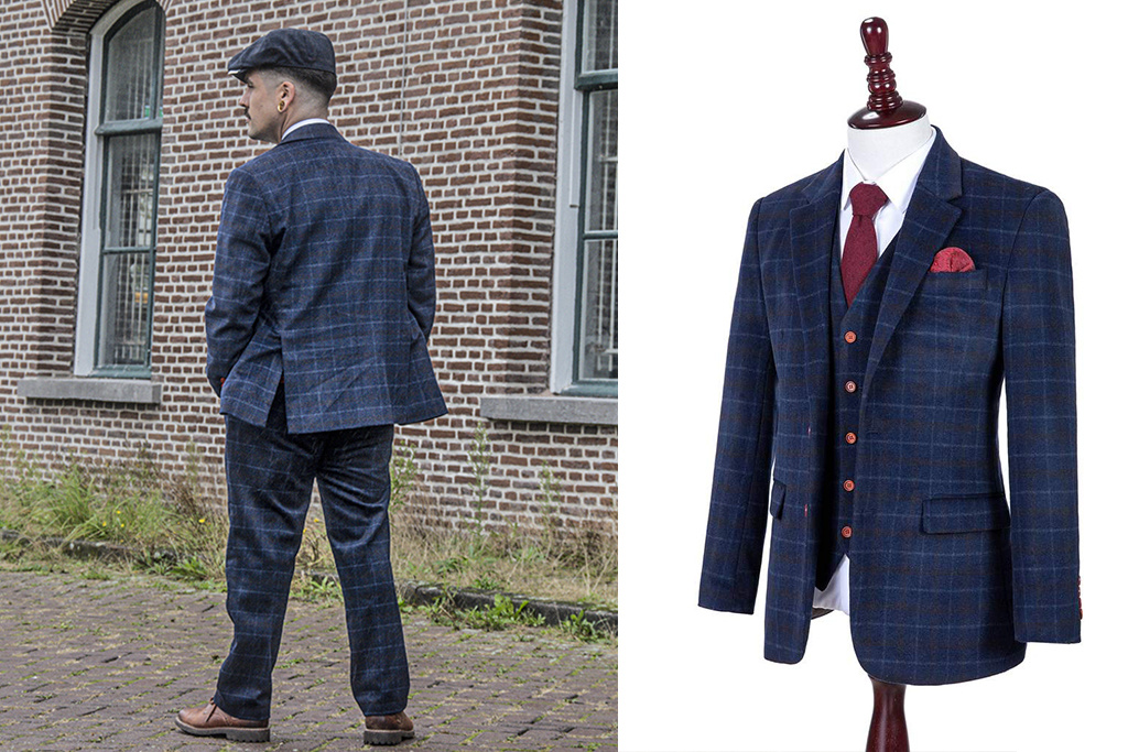 Add a tweed bag, vintage style boots, matching shirt, cufflinks and a Peaky Blinders flat cap or hat to your suit for that real overall Shelby Brothers look.
