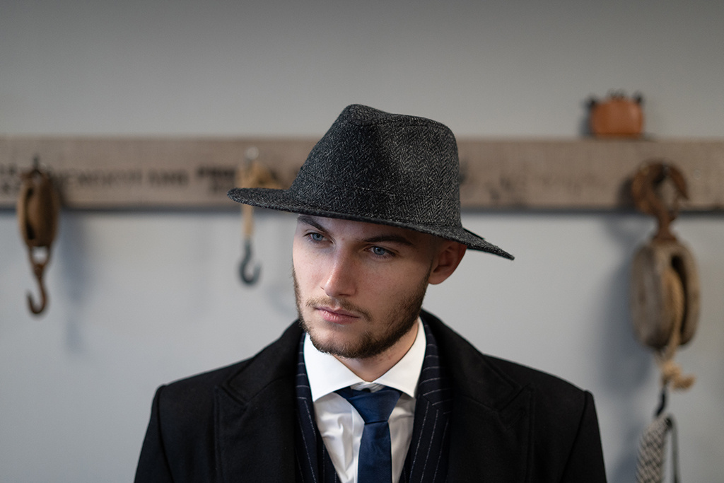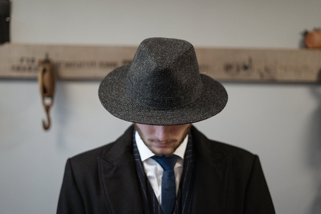 Refinement meets mystery in our black Harris Tweed Fedora - Denholm. An ultimate stylish choice for a timeless and bold look, crafted from 100% wool and Harris Tweed.