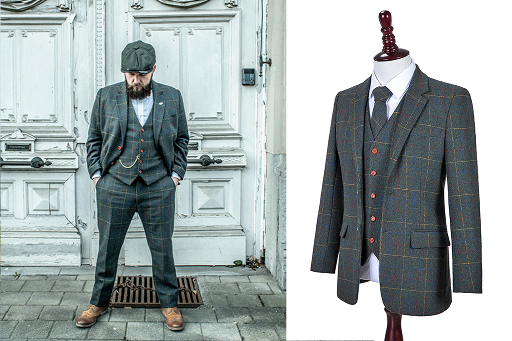 Add a tweed bag, vintage style boots, matching shirt, cufflinks and a Peaky Blinders flat cap or hat to your suit for that real overall Shelby Brothers look.