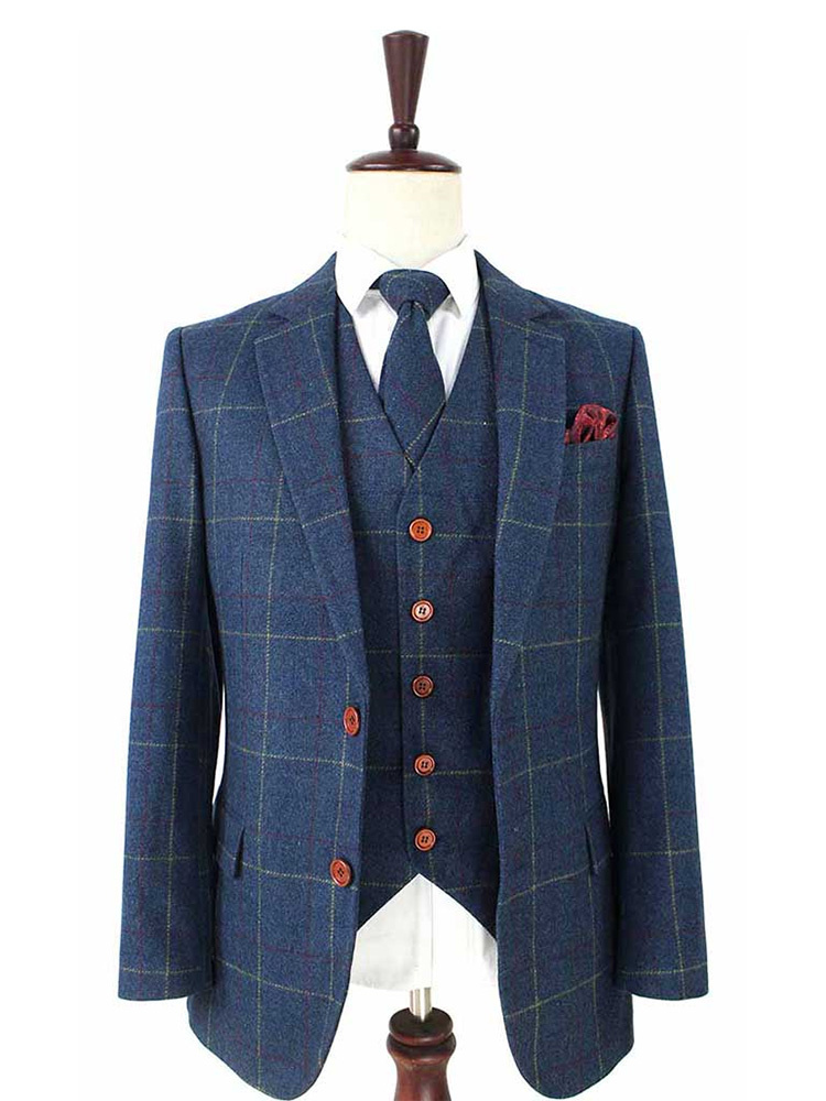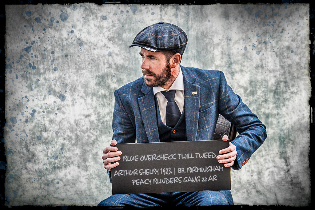 This fantastic Blue Overcheck Twill 3-piece tweed suit is modelled on Arthur Shelby, the troubled but tough and stylish eldest Shelby. The suit is made by tailors with great craftsmanship who will use your measurements to cut it into a smart sleek fit. The authentic Overcheck Twill tweed in blue makes this suit perfect for both business and leisure. Or wear it at a great Peaky Blinders styled wedding!