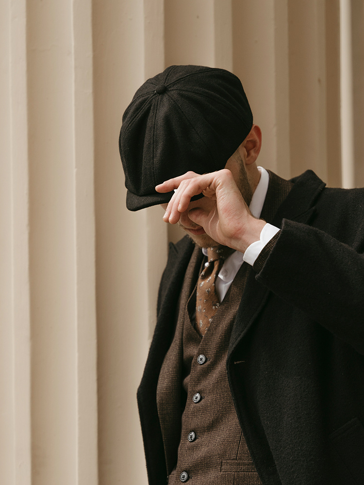 The signature tweed flat cap worn by the Shelby brothers and co.