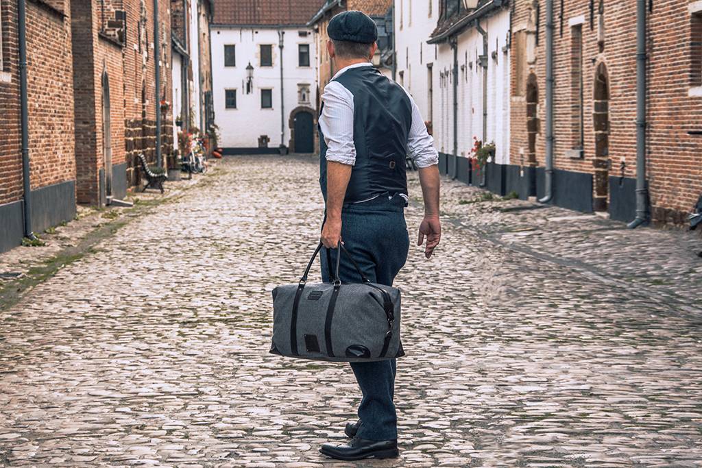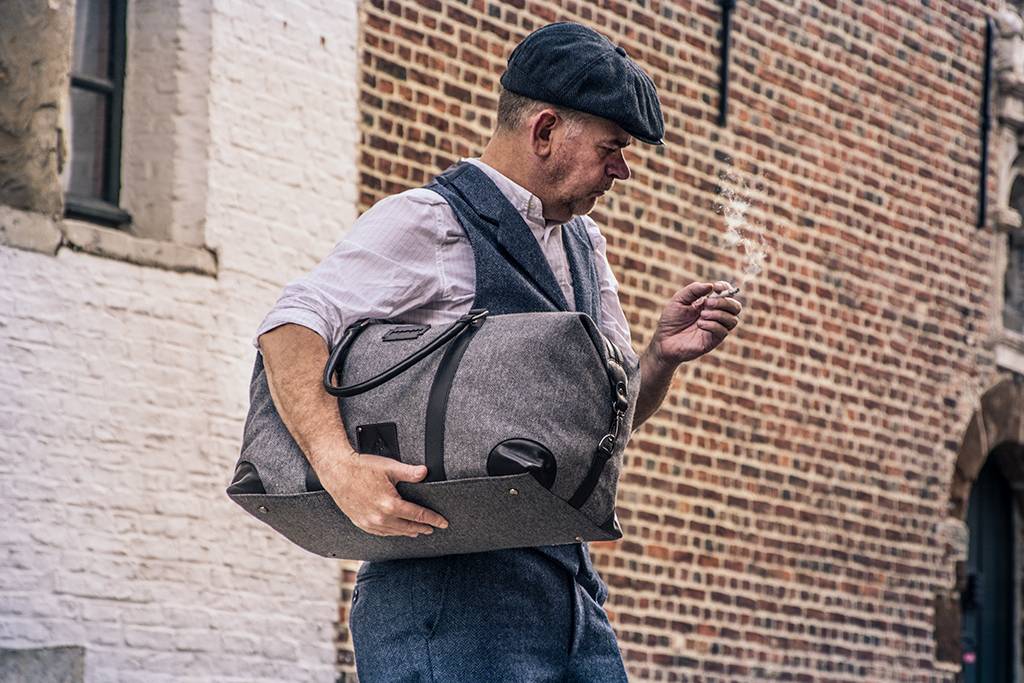 ¿Se va de fin de semana o simplemente va al gimnasio? Hágalo al estilo de Peaky Blinders. Nuestro bolso de piel Small Heath es el espacioso weekender perfecto para todos los viajes, incluso los que se realizan fuera de Birmingham. Combina materiales de aspecto vintage como el tweed inglés negro y gris y el cuero negro italiano, con todas las comodidades que necesita un hombre moderno, como el espacio para un MacBook y un par de zapatillas extra.