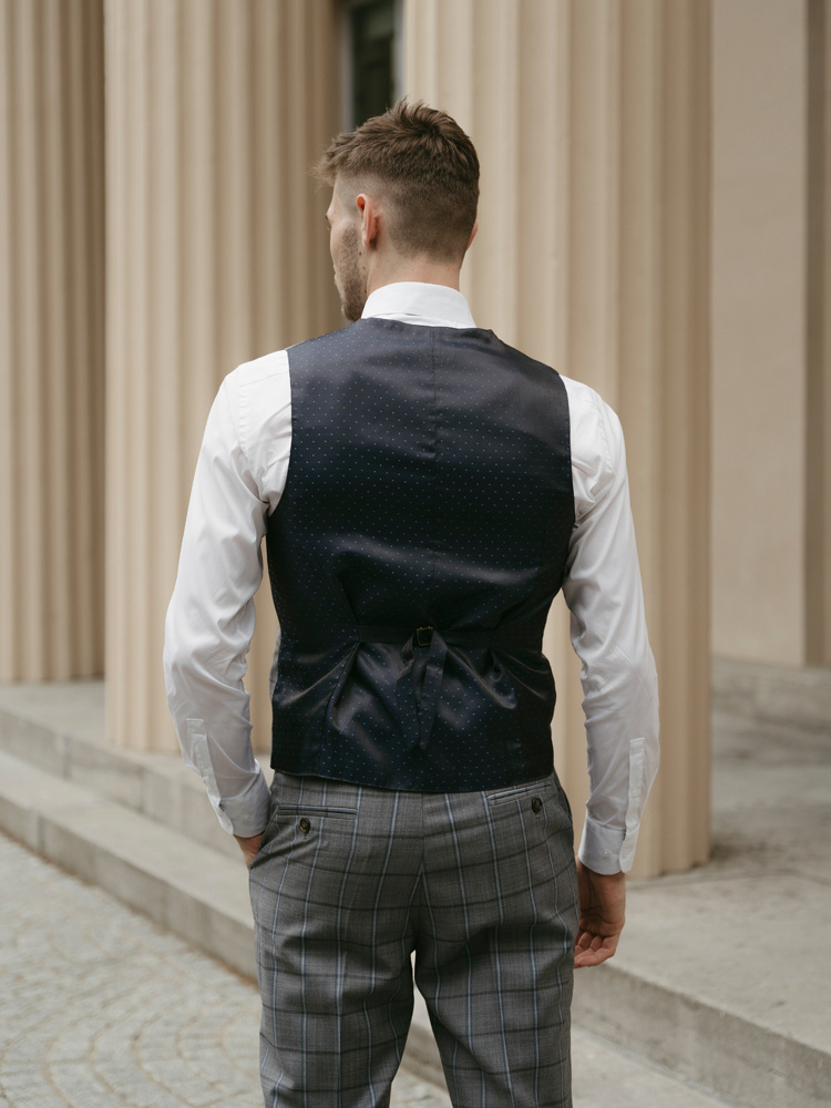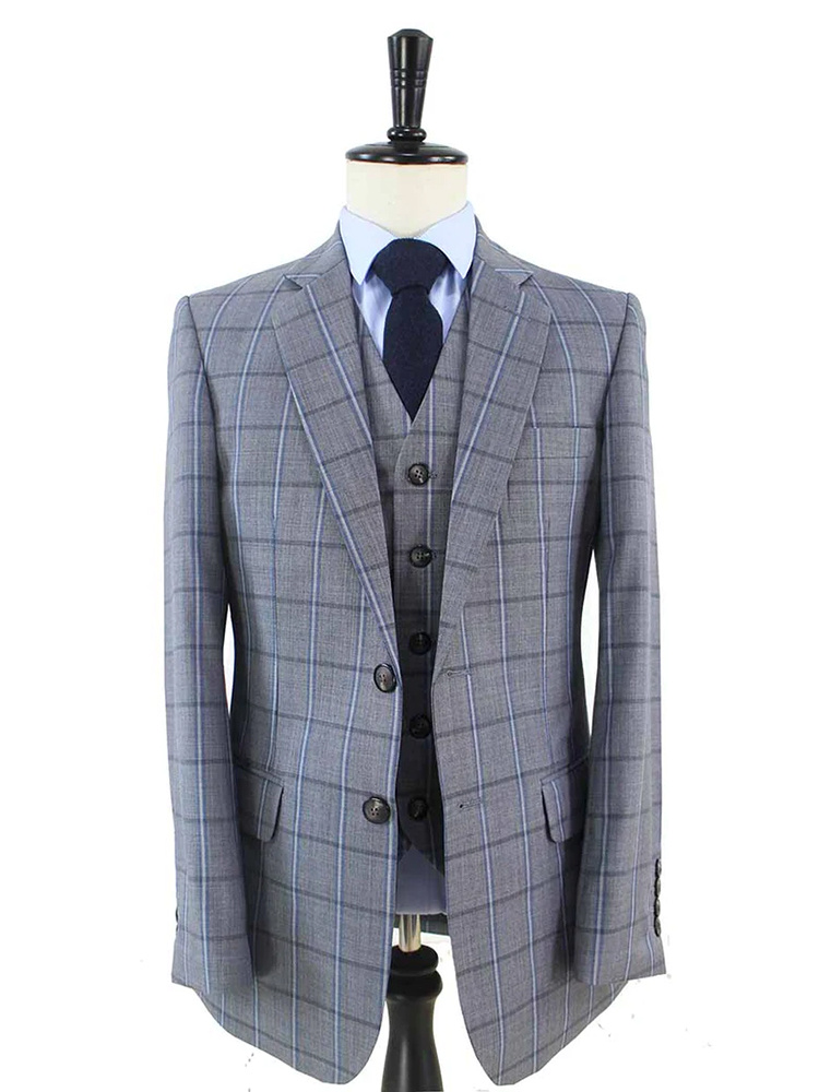 DescripciónTraje sastre hombre | Traje 3 piezas | Gris azulado | Windowpane | Lana estambre | Ligero y transpirable