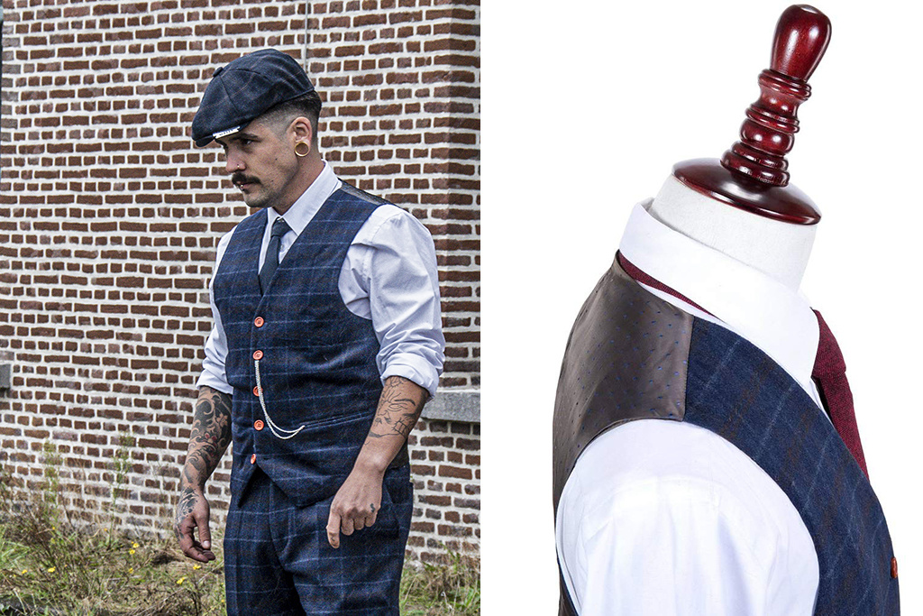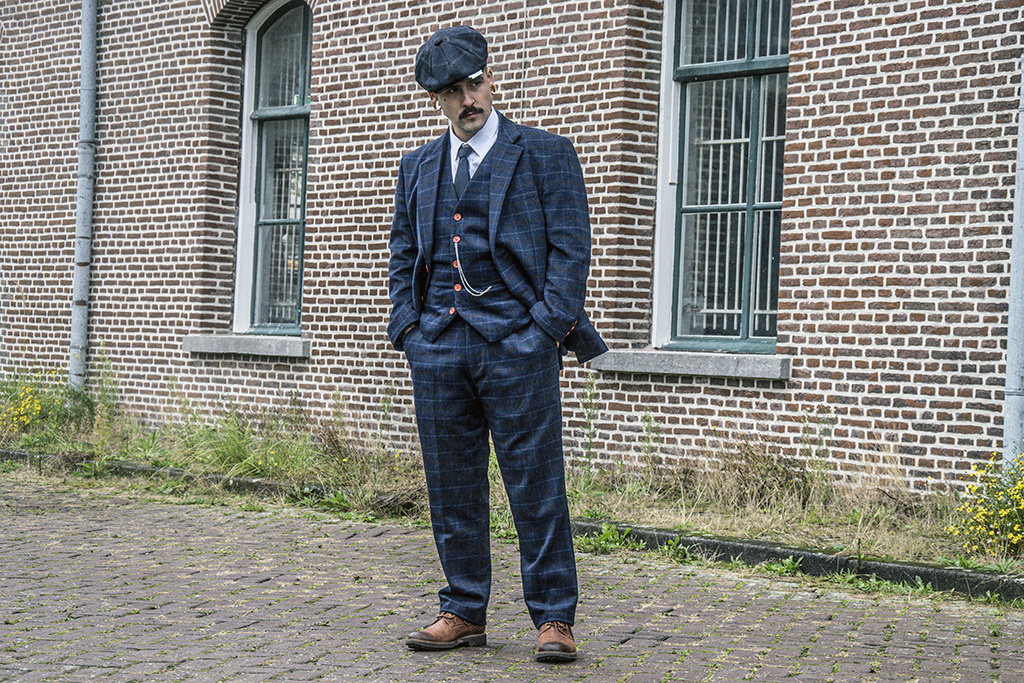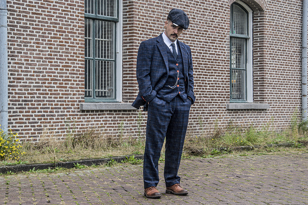 Ajoutez un sac en tweed, des bottes de style vintage, une chemise assortie, des boutons de manchette et une casquette plate ou chapeau Peaky Blinders à votre costume pour un véritable look complet Shelby Brothers.