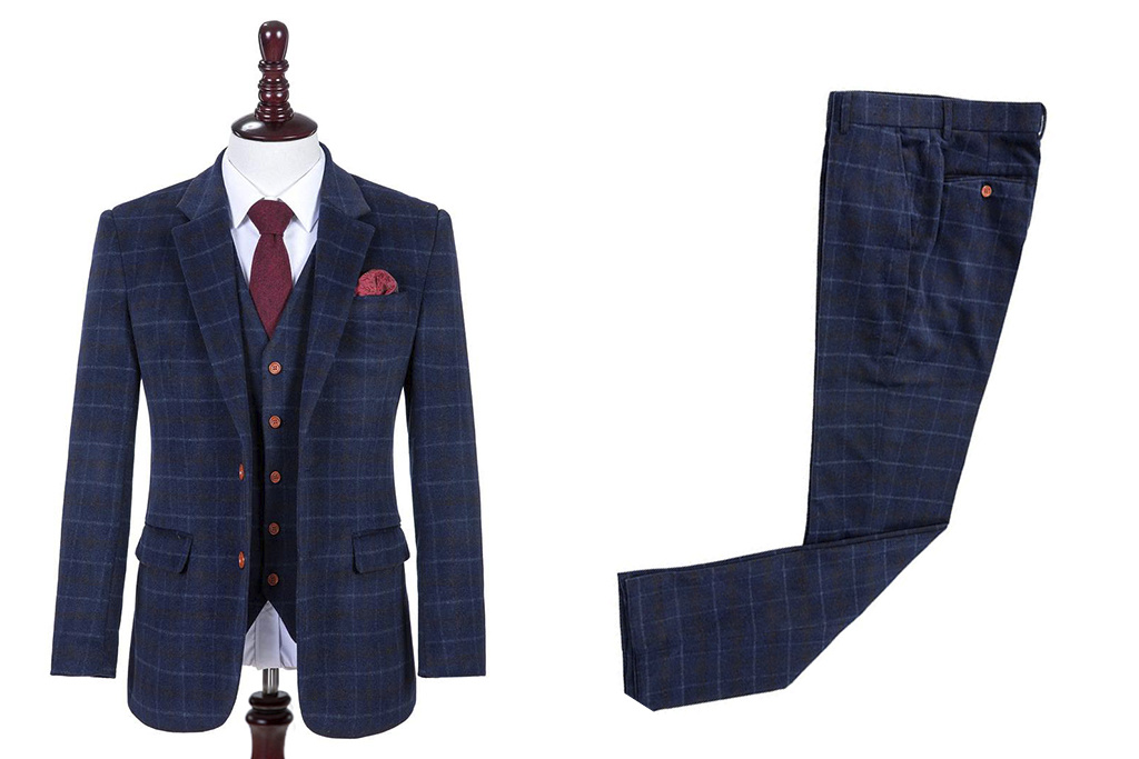 Ce fantastique costume 3 pièces en tweeds'inspire d'Arthur Shelby, l'aîné turbulent mais coriace des Shelby. Le costume est confectionné par des tailleurs de grand savoir-faire qui utiliseront vos mesures pour le couper en une coupe élégante. L'authentique tweed Prince de Galles en bleu marine rend ce costume parfait pour les affaires et les loisirs. Ou portez-la lors d'un grand mariage façon Peaky Blinders !