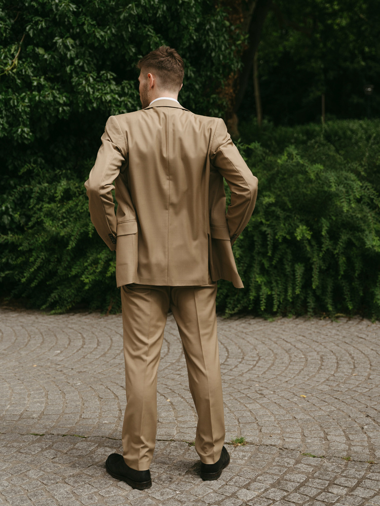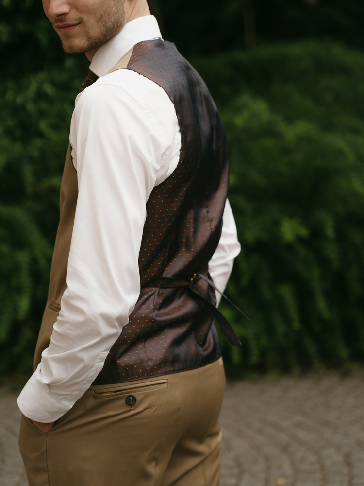 Confectionné sur mesure selon vos mensurations exactes par des mains expertes, cet ensemble fait sur mesure comprend veste, gilet et pantalon, avec une doublure satinée lisse et des détails précis. Il s’agit de mode masculine intemporelle avec une touche moderne et assurée — sobre, élégant, conçu pour impressionner en toutes circonstances.